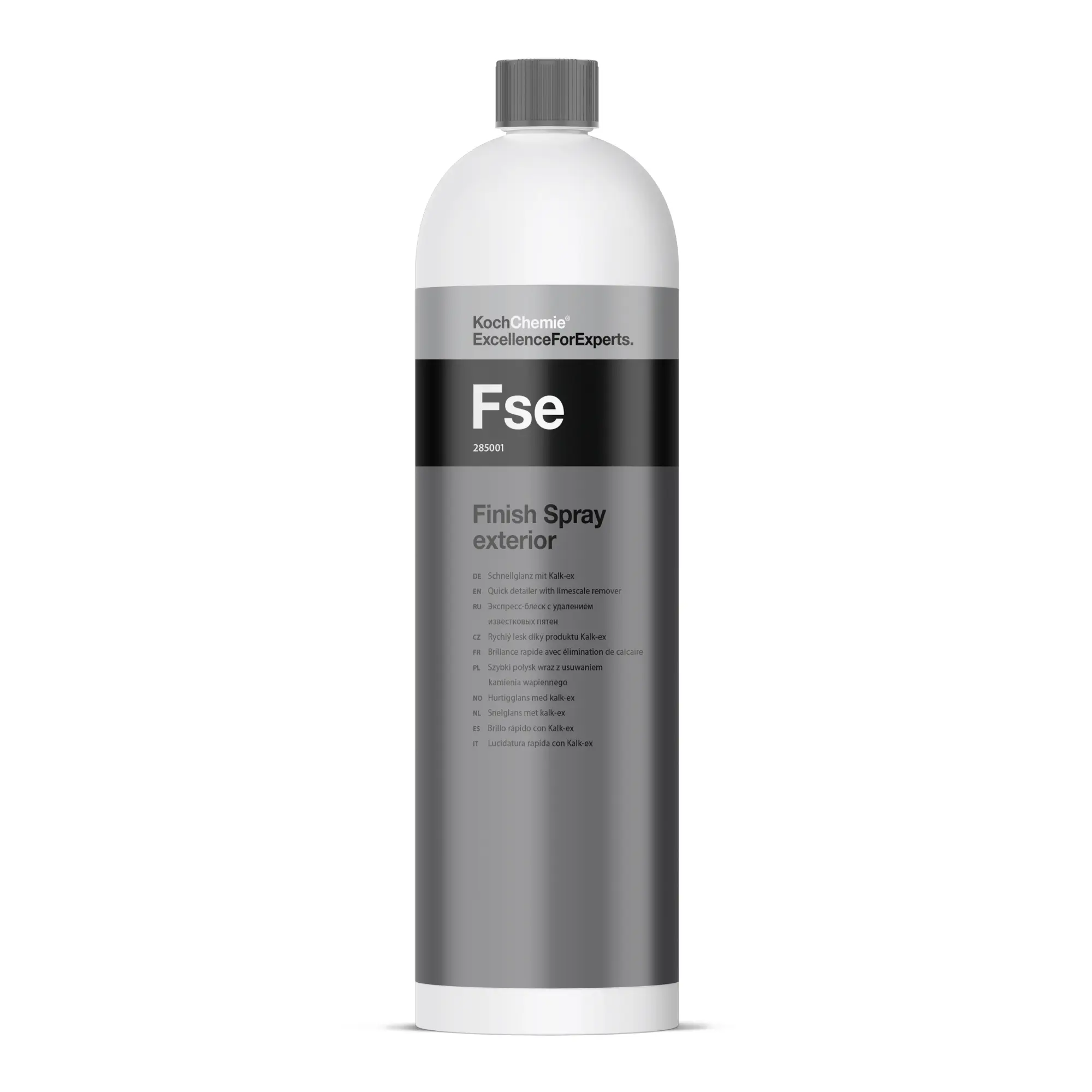 Le Koch Chemie Finish Spray exterior, plus connu sous le nom de Fse, est un produit de finition unique sur le marché du detailing. Ce Quick Detailer polyvalent ne se contente pas de nettoyer les saletés légères et de faire briller la carrosserie ; il possède une formulation acide spécifique capable de dissoudre les taches de calcaire fraîches en un seul passage. C’est le produit de secours idéal après un lavage lorsque des traces de séchage ou des gouttes d’eau ont marqué le vernis, les vitres ou les plastiques. Sa chimie avancée nettoie, entretient et protège les surfaces extérieures tout en éliminant les dépôts minéraux qui ternissent l’éclat de votre véhicule. En une seule étape, le Fse redonne de la profondeur à la peinture et laisse une finition lisse, brillante et sans aucune trace résiduelle.